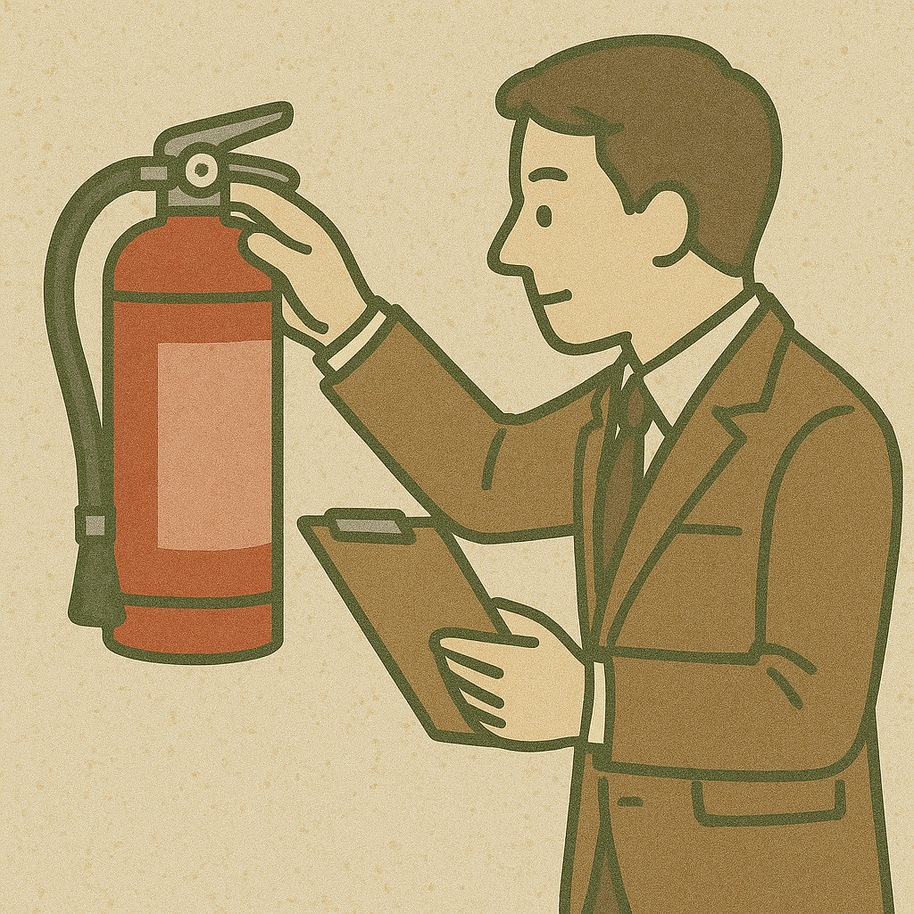 消防点検は消火器や火災報知器、受水槽点検は受水槽、浄化槽点検は浄化槽、エレベーターは昇降機内に点検票が貼ってあります。そちらを見れば最後に点検をしたタイミングもわかりますし、報告書の有無も想像できると思います。