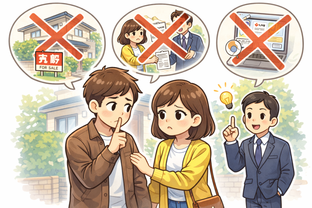 このような状況では、売却活動そのものをできる限り目立たせずに進めることが、当事者の心理的安定につながります。