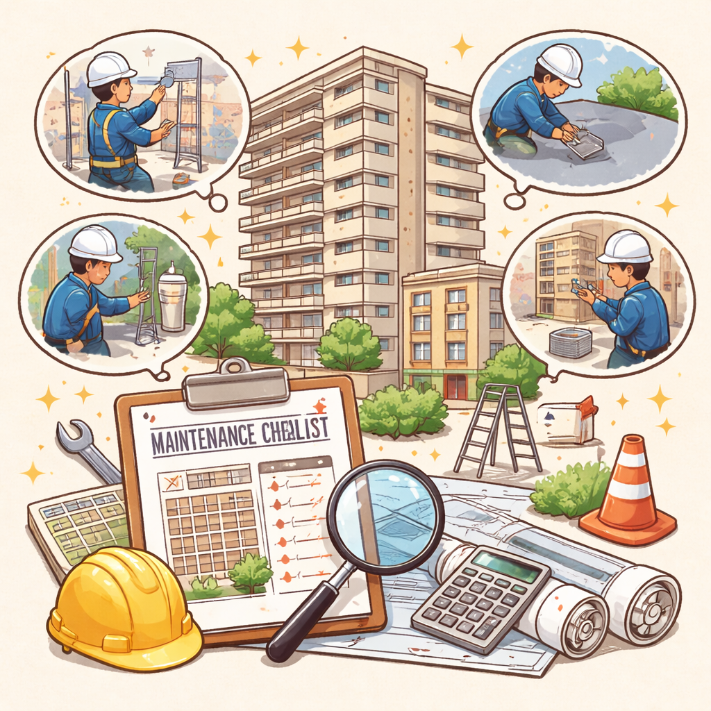 長期修繕計画書を入手したら、まず確認すべきは次回の大規模修繕がいつ予定されているかです。一般的に大規模修繕は12年から15年周期で実施されますが、築年数と照らし合わせて、直近の実施時期や次回の予定時期を把握しましょう。
